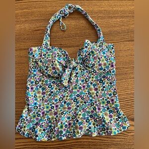Coco Rave Floral Print Halter Bathing Suit Top M 34 C