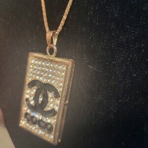 The perfect statement piece for any jewelry collection! This stunning Coco vintage pendant features an elegant gold-tone rectangular design adorned with dazzling cubic zirconia stones, showcasing the iconic interlocking "CC" logo. Paired with a matching gold-tone chain, this luxurious necklace exudes timeless sophistication. Ideal for adding a touch of glamour to your everyday look or elevating your evening attire. Condition is excellent, with no visible wear. Don't miss out on owning this chic, vintage-inspired treasure!