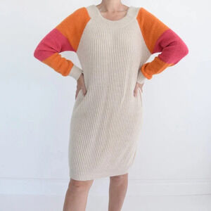 Cocogio Made In Italy 10% Wool Cream Knit Sweater Dress Size Medium