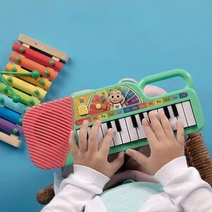Bring their love for music to an adorable new level with the First Act CoComelon Musical Keyboard! This vibrant 11-inch keyboard is inspired by the popular and educational YouTube series, CoComelon! The playful First Act children's keyboard includes clips of the CoComelon ABC song and the CoComelon Music song! This preschool keyboard is easy to use and ready to play right out of the box! The keyboard features a carry n' go handle, so your child can take the show on the road! With this keyboard, your child can explore music and even develop necessary skills like brain-memory, hand-eye coordination, independent thinking, and auditory skills! Turn the sing along up a notch with the CoComelon Musical Keyboard.