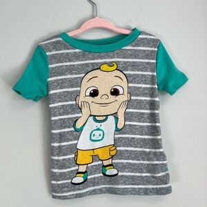 Cocomelon Matching Pyjama Shorts & Shirt Set Teal Gray Stripes 3T