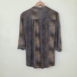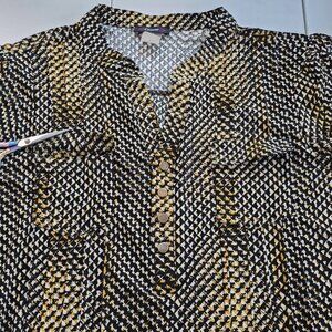 Cocomo Tunic Top Womens M Yellow Black White Henley 3/4 Roll Tab Sleeves Pintuck