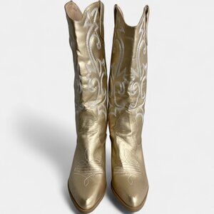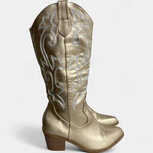 Coconuts Women's Gold Faux Leather Cowgirl Western Cowboy Boots Size 6