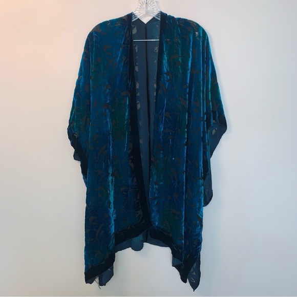 Cocoon House Chic Teal Blue Silk Kimono Cape