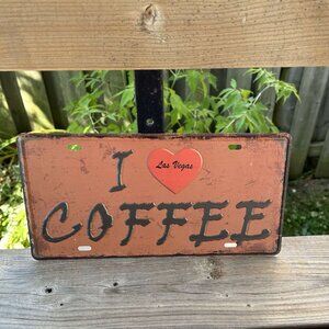 This sign features a bold, classic typography with the iconic phrase "I Love COFFEE" , in large letters, accompanied by a heart symbol (Las Vegas).
