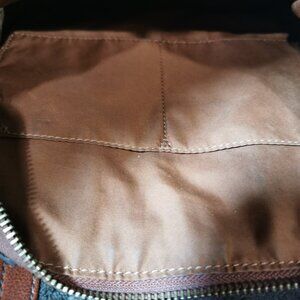 Zipper closure Fabric lining Slight rubbing on one corner No crossbody strap