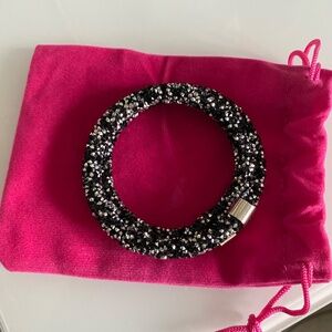 This lovely coiled bracelet is new and has never been worn. It wraps around twice and sparkles brilliantly with its Swarovski crystals.