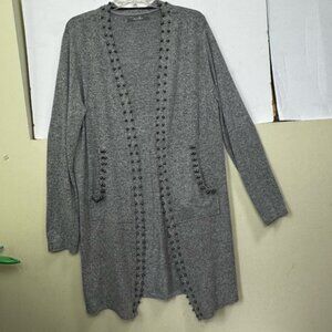 Coin 1804 Los Angeles Beaded Long Cardigan Sweater Duster Pockets Stretch Soft Lightweight