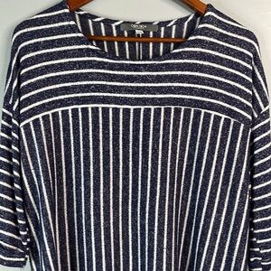 Coin 1804 Stripe Knit Top Navy White 1/2 Sleeve Round Neck Brushed Stretch 2X