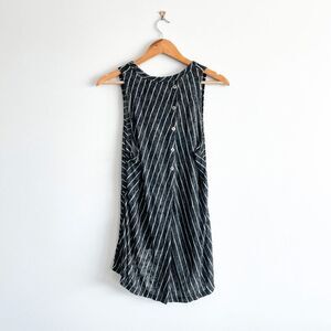 Coin 1804 Womens Top Sleeveless Half Open Back Stripes Black Large