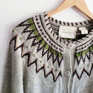Coincidence Chance Cardigan Womens Small Grey Fair Isle Pockets Lambswool Blend