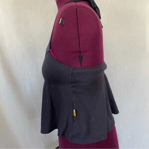 Size S navy blue colcci halter top ties up with silk like straps around the neck features 2 button on front and has a flare like mid to waist section fitting loosely for those super hot hits letting a breeze flow to cool you down in the sun