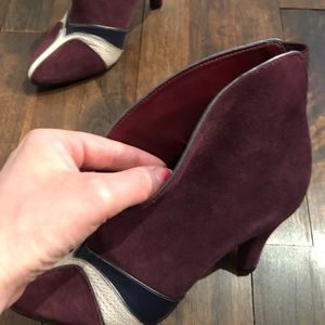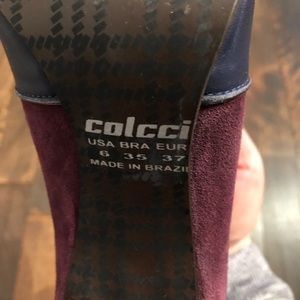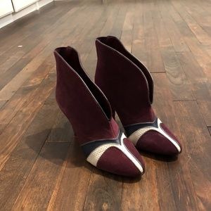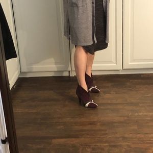 Colcci ankle boots burgundy suede with leather detail on front.