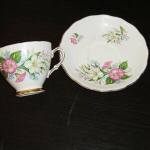 Colclough 7926 pink white blue flowers cup and saucer VGU