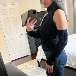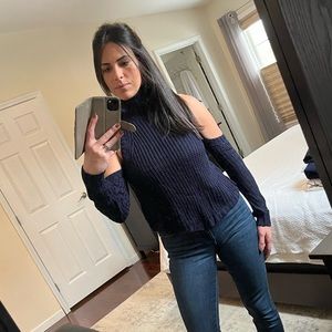 Navy blue cold should cropped knit turtleneck sweater. In flawless condition, worn very minimally!