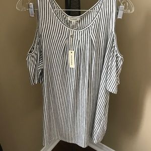 Max Studio cold shoulder top. Great for leggings , dress up or down. Fits roomy can be loose or more fitted depending on your size.