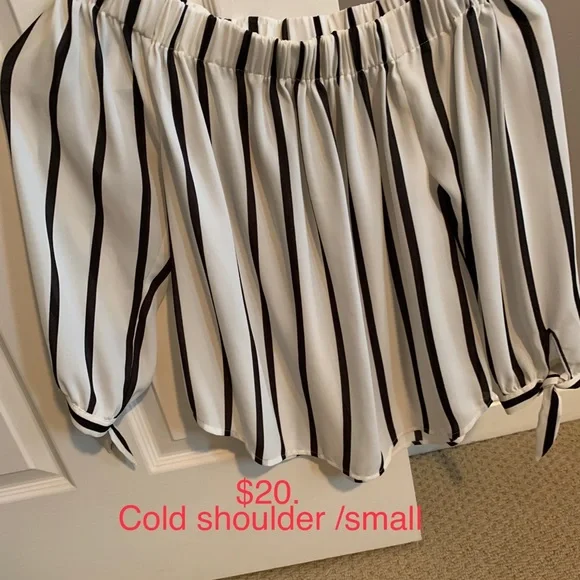Comfy light weight blouse can be worn off shoulder or not Black and white stripe Dress up or compliment jeans