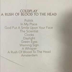 Coldplay's iconic album 'A Rush of Blood to the Head' on CD. Features unique cover art.