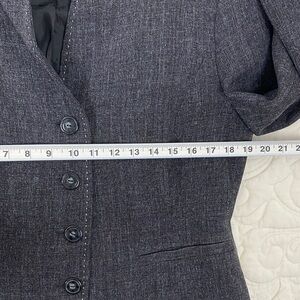 Coldwater Creek blazer. Women’s tag size 8 (see photos for measurements). Polyester spandex blend. Dark gray. Button front. Fully lined. Exposed contrast stitching.