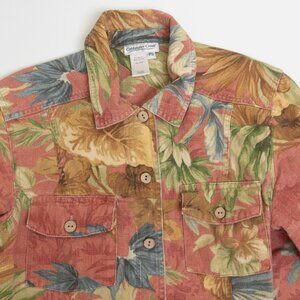 ✨ Coldwater Creek Floral Button Front Jacket Petite Small 100% Cotton Shacket