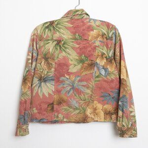 Vibrant Coldwater Creek floral jacket featuring a bold multicolour botanical print in earthy tones