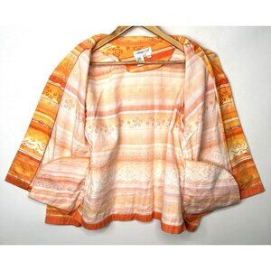 Coldwater Creek Shirt Floral Stripe Button Up Collared Cotton Orange Size Large