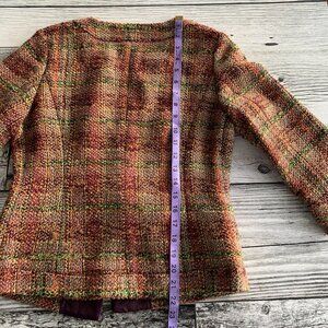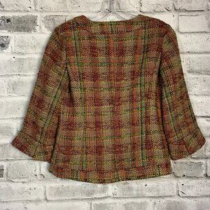 Coldwater Creek Tweed Boucle Cropped One Button Collarless Blazer