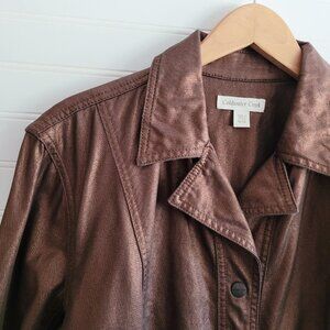 Coldwater Creek Womens Jacket Plus Size 18W Bronze Metallic Pockets Cotton Snaps