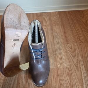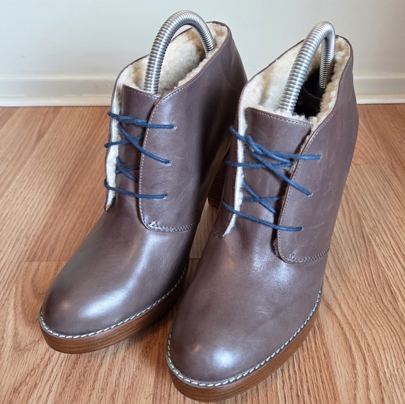 Cole Haan Ankle Bootie With Shearling Fur Lined Lace Up Gray Size 10