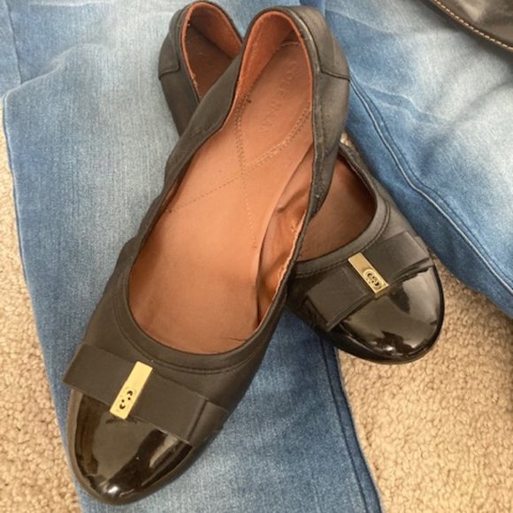 💘Cole Haan Ballet Flats Black Gold Bow 7.5👌🏻