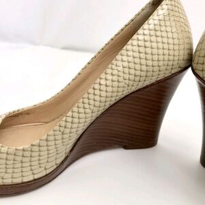 Cole Haan Beige Snake Skin Pattern Peep Toe Wedge Sandal Shoes Size 7B