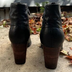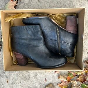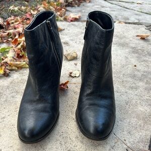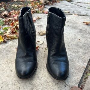 Cole Haan Black stacked heel Cassidy ankle boots. Size zipper detailing. Heel height is 2.5”