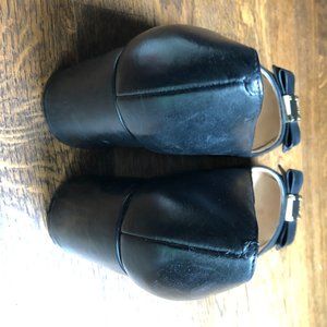 Black Leather Tali Bow pumps with gold hardware Very good condition