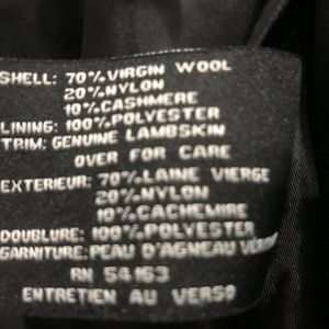 Hip length; off-center lambskin trimmed zipper; collar can be worn folded down or standing up. Gently used condition. Still lots of life left in it. Smoke-free home; not pet-free (cat).