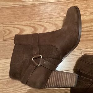 Heel height approximately 3 inches, taken at highest point. Almond shaped toe.