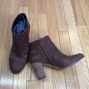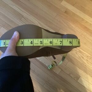 Heel height approximately 3 inches, taken at highest point. Almond shaped toe.