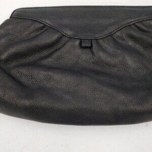 Black with silver tone hardware plate. Magnetic close and fully lined