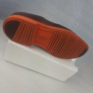 Lightweight rubber Sole, not heavy at all. extremely comfortable trendy and stylish. BROWN Cognac contrast Orange soles.