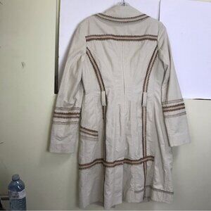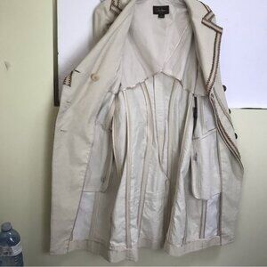 Cole Haan Cotton Lambskin Leather Detail Boho Trench Coat Jacket Fitted Pockets