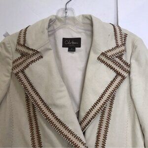 Cole Haan Vintage Cotton Lambskin Leather Detail Boho Trench Coat Jacket Fitted Pockets