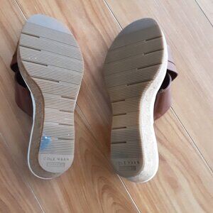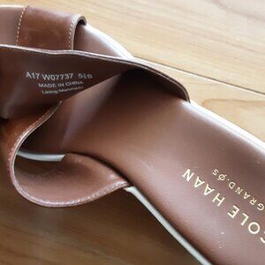 Cole Haan Grand OS Briella Brown Leather Slide Sandals with Wedge Heels