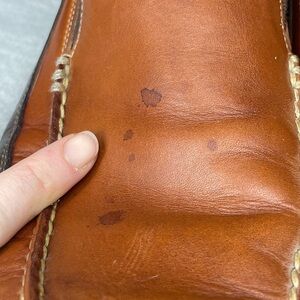 Good Condition other than a few dark spots on the toe something was dripped on and couldn’t be removed