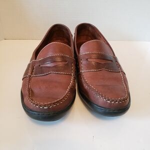 Cole Haan mens brown leather Penny loafer slip on shoes.