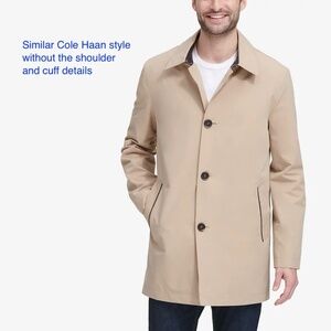 Cole Haan Men's Rain Jacket Caramel Tan w Brown Leather Trim Sz M Car Coat