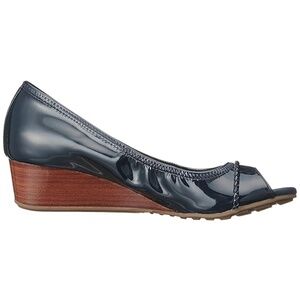 Cole Haan Navy Patent Leather Open Toe Wedge Pumps Shoes