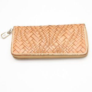 Cole Haan Optical Weave Travel Zip Wallet for Women Light Brown Color