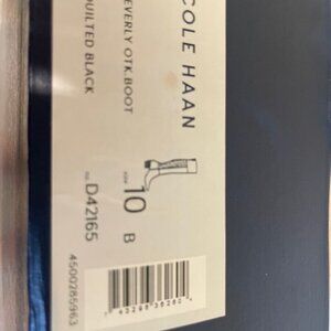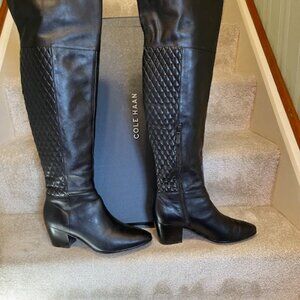 The style for these Cole Haan boots is Everly OTK Boots. It has quilted sides with half zipper. Very comfortable on with low heel 2.75", and wider opening at the top. Leather sole. Size US 10. Only worn a few times, almost new.