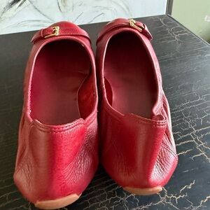 Cole Haan Red Flats with Glossy Finish and Gold Buckle