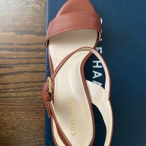 Cole Haan Sandals (Josie Block Heel) in Brown Leather Size 5.5-B