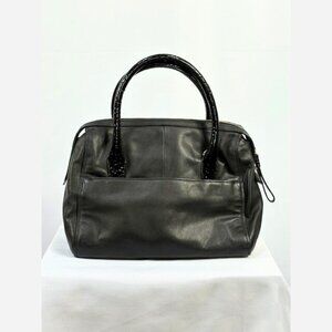 Cole Haan Structured Black Satchel with Patent Accents – Like New